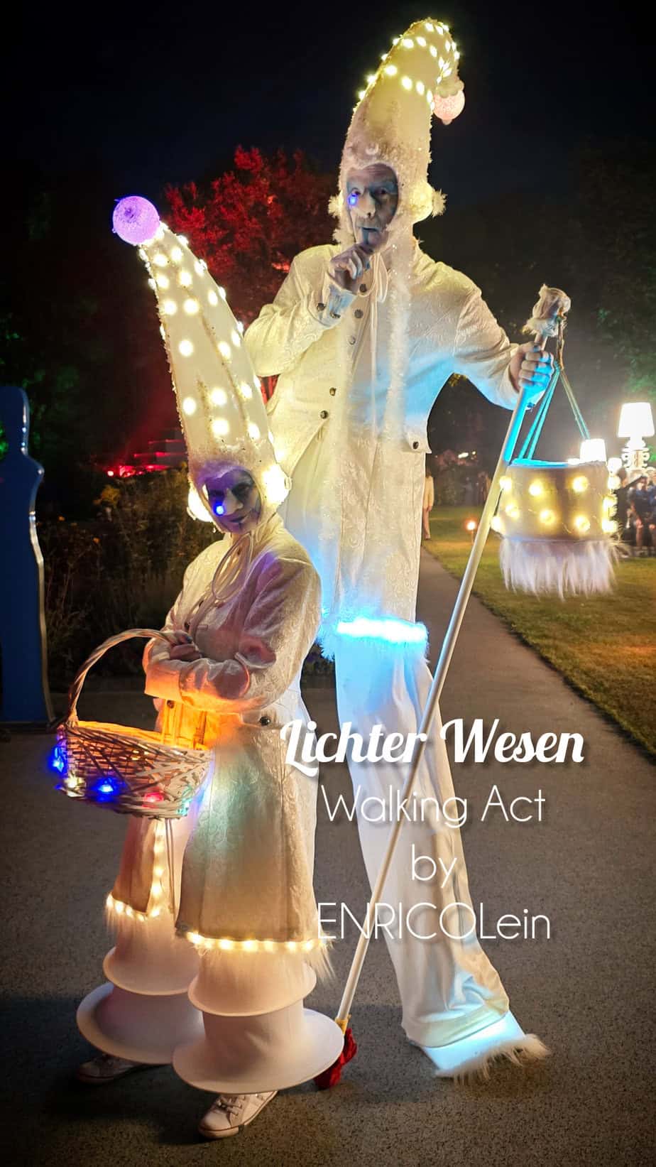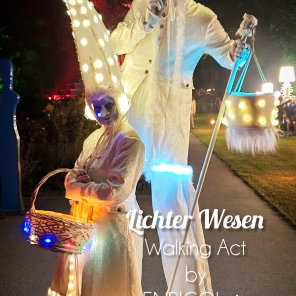 Ein großer Fundus an außergewöhnlichen, liebevoll gestalteten Walking ActFiguren, mit und ohne Stelzen, jedoch alle mit Enrico`s Spezial-Make-Up Markenzeichen, ermöglicht vielseitige Einsatzmöglichkeiten.